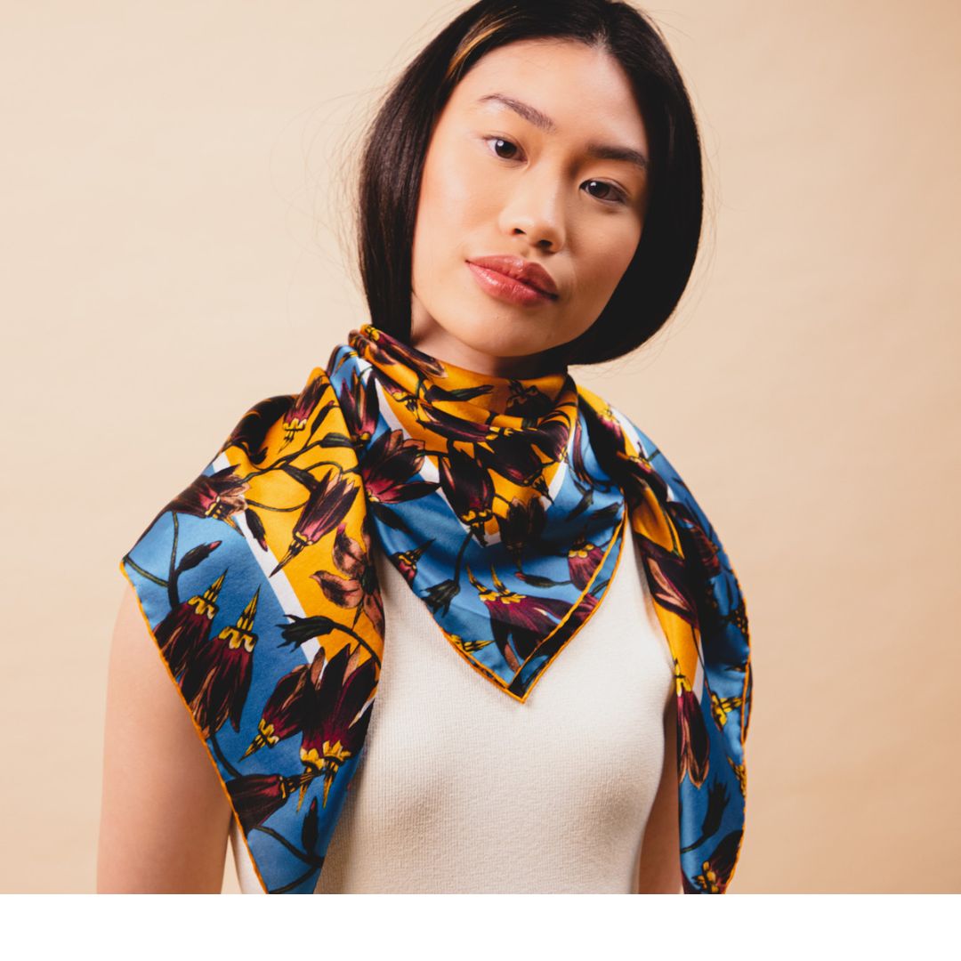 Écharpe en Satin de Soie Imprimé Pasque - Safran